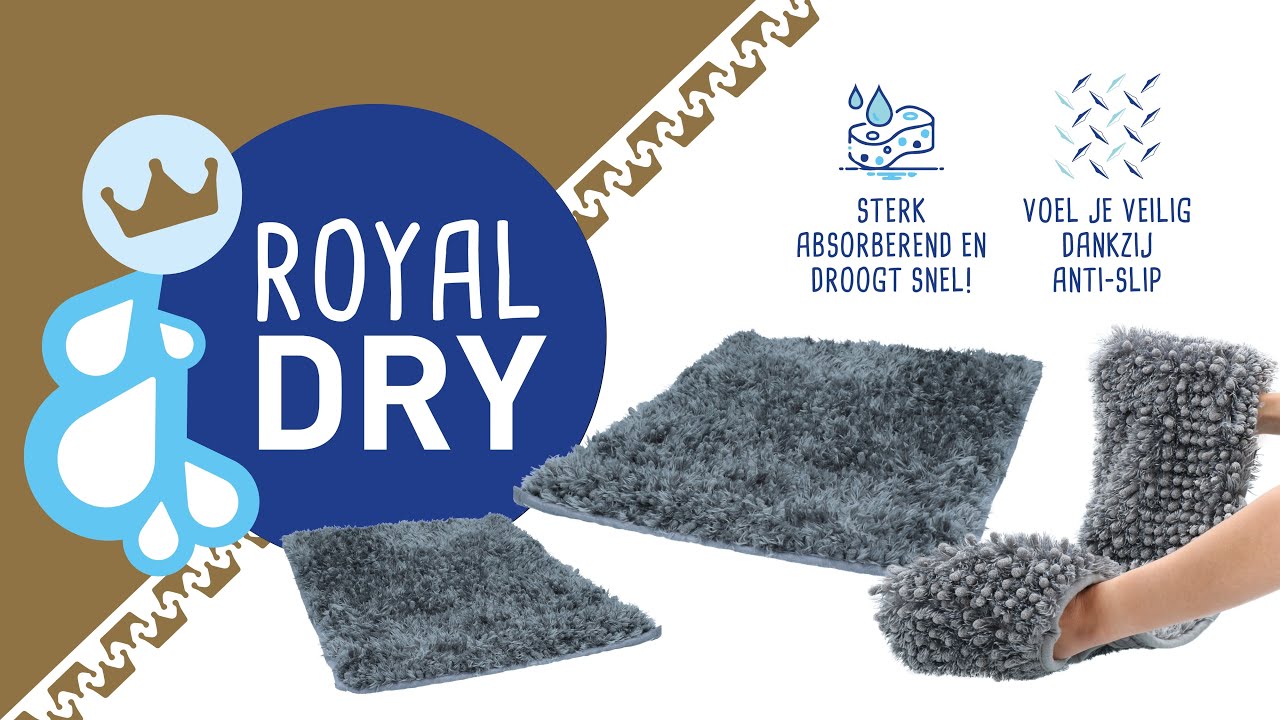 Deze super absorberende microvezel deurmat zuigt water en vuil op als een spons. Modderige en natte pootafdrukken door het hele huis zijn verleden tijd. Vocht wordt direct opgenomen en vastgehouden, zodat het niet door de mat heen lekt en de vloer schoon en droog blijft. De anti-sliplaag aan de onderzijde zorgt ervoor dat de mat op zijn plek blijft liggen. De Royal Dry deurmat is extreem duurzaam, super zacht en neemt geen geurtjes op. Ook is de handdoek antibacterieel en droogt erg snel.
