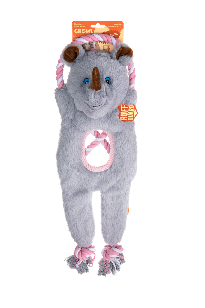 De Growl Jungle Tugz combineren pluche en doorlopend touw in één jungle-thema speeltje, waardoor ze perfect zijn voor trekken, kauwen en avontuurlijk spel. Elk speeltje bevat twee grote piepers voor langdurige interactie en plezier en is ontworpen met het speelse karakter van jungle-dieren in gedachten.