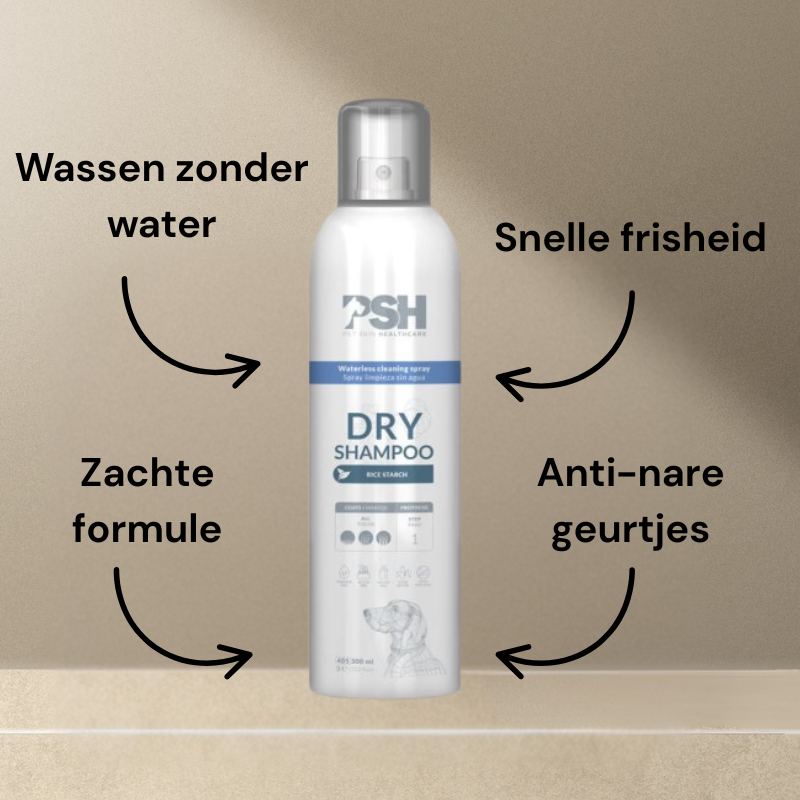 De PSH Dry Shampoo is een mild en natuurlijk verzorgingsproduct, speciaal ontwikkeld om vuil, talg en vieze geurtjes effectief te verwijderen zonder dat je hond in bad hoeft. Deze droogshampoo is vrij van schadelijke stoffen, waardoor het veilig is voor dagelijks of regelmatig gebruik – ook bij honden met een gevoelige huid.