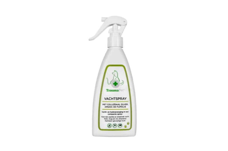 TraumaPet Vachtspray is een verzorgende en beschermende spray voor de huid en vacht van je huisdier, met een unieke mix van colloïdaal zilver, arganolie en tijmolie. Deze natuurlijke samenstelling kalmeert de huid, verzorgt de vacht intensief en helpt tegelijkertijd om teken, muggen en vlooien te weren – zonder chemische toevoegingen.