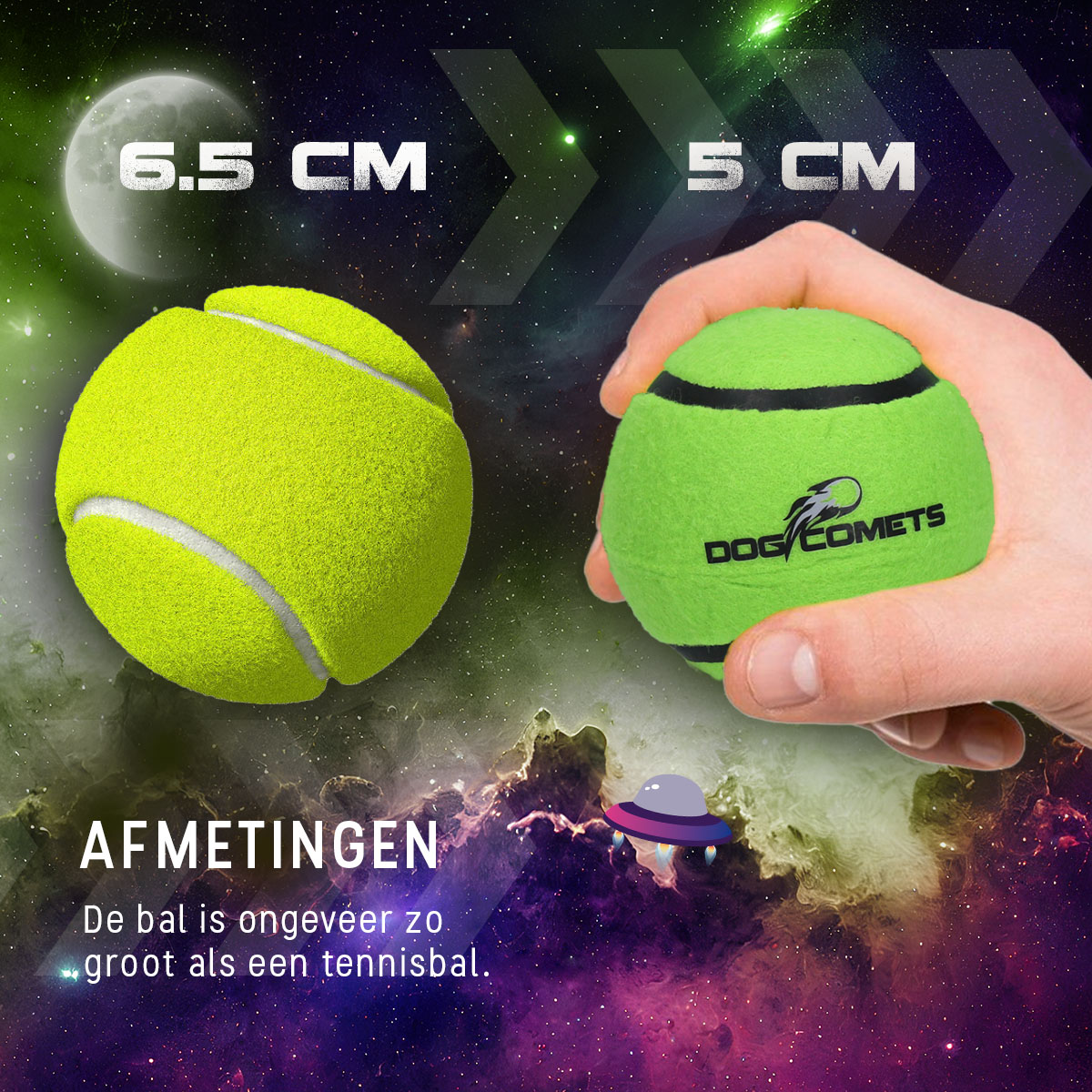 De Dog Comets Tennisbal Starlight S Groen is een topper voor jouw webshop: lang meegaand, veilig en perfect voor kleine honden en puppies die een sterke tennisbal nodig hebben!