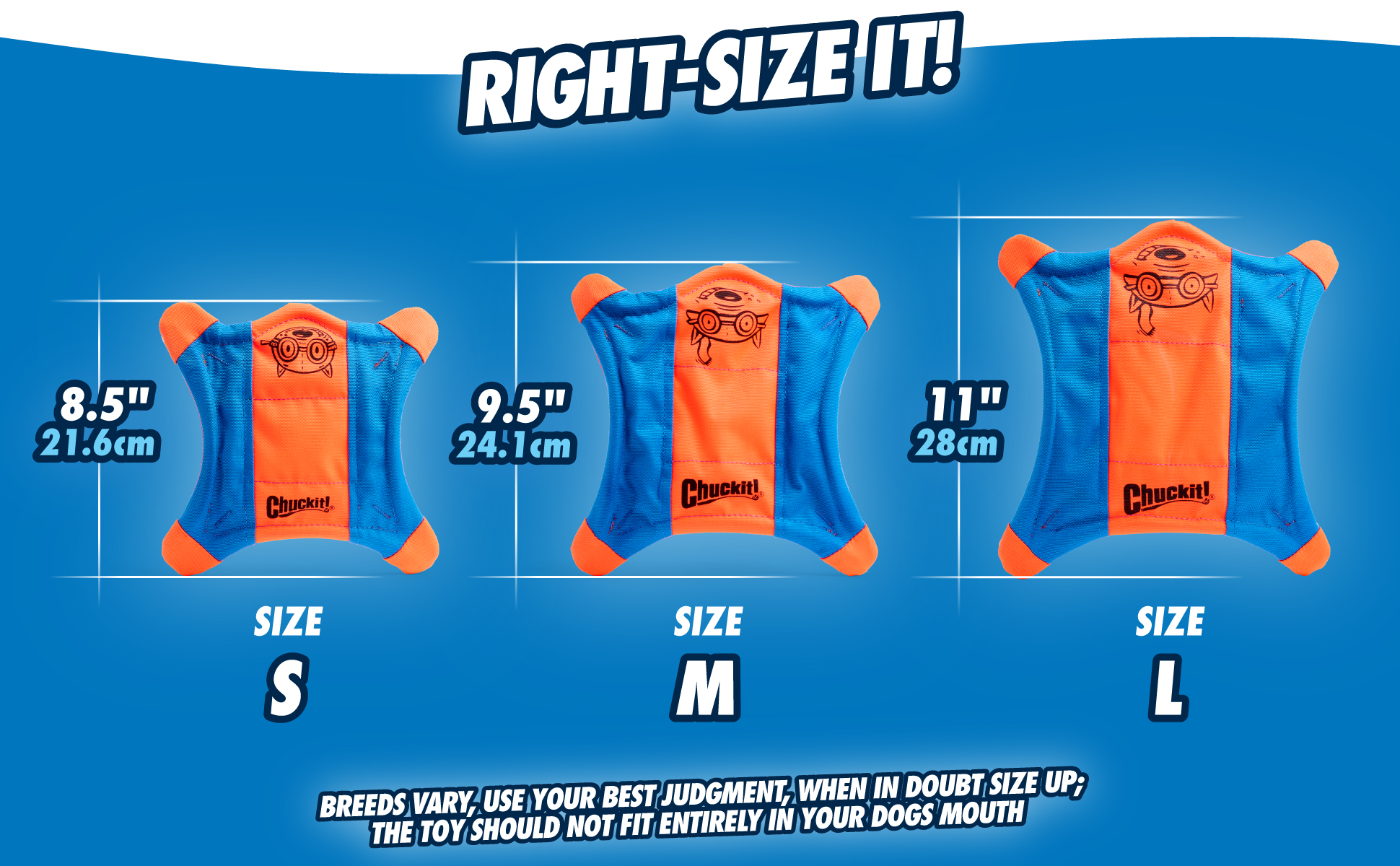 De Chuckit! Ultra Flying Squirrel is een uniek zwevend speeltje van 24 x 22,5 cm dat soepel door de lucht glijdt en perfect is voor vangen en apporteren. De felle blauw-oranje kleuren zorgen voor uitstekende zichtbaarheid, zelfs in water waar het blijft drijven.