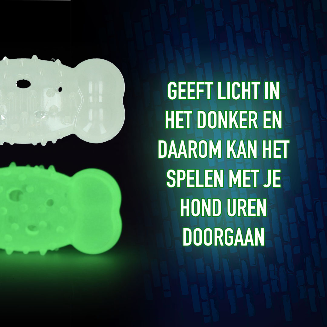 Baalt jouw hond ook altijd wanneer het donker wordt en je daardoor niet meer samen buiten kunt spelen? Dat is vanaf nu verleden tijd met de 2 Glow Cracking & Tracking Bone. Nu kun je ook in het donker met je hond spelen! Dit speelgoed geeft licht in het donker en daarom kan het spelen met je hond uren doorgaan, zelfs in het donker.