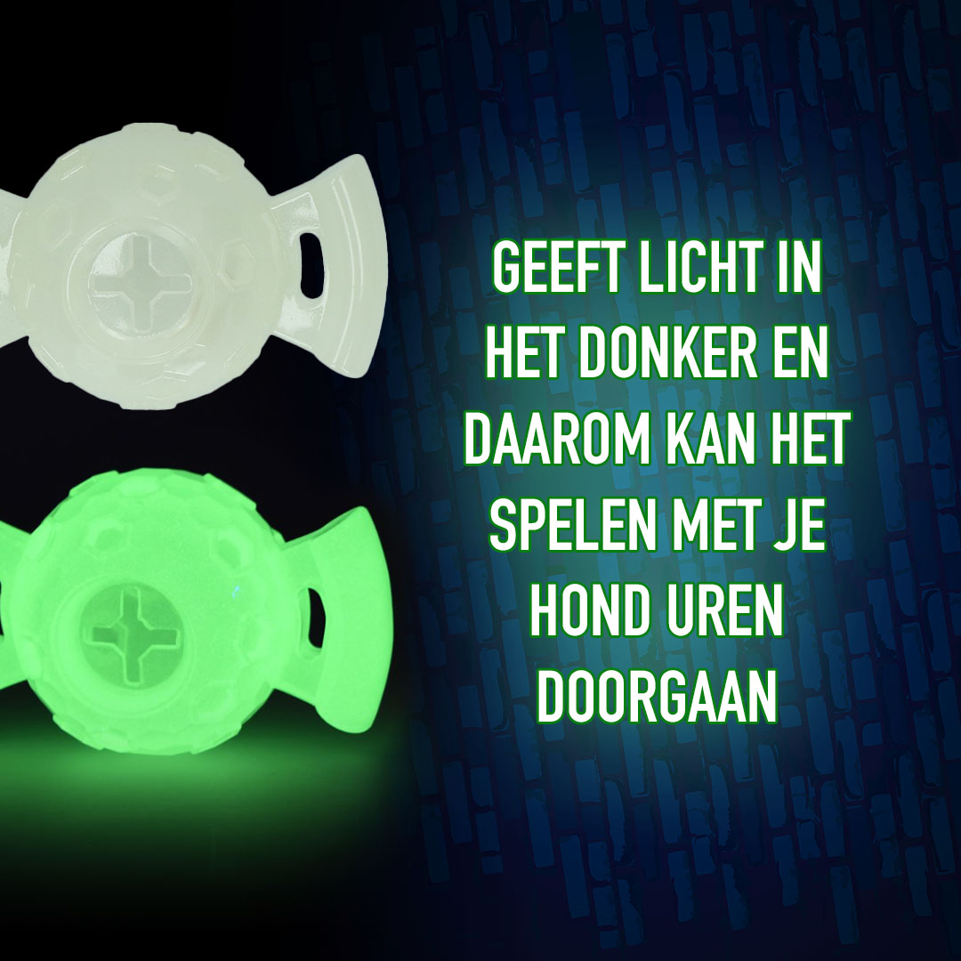 Dit speelgoed geeft licht in het donker en daarom kan het spelen met je hond uren doorgaan, zelfs in het donker!