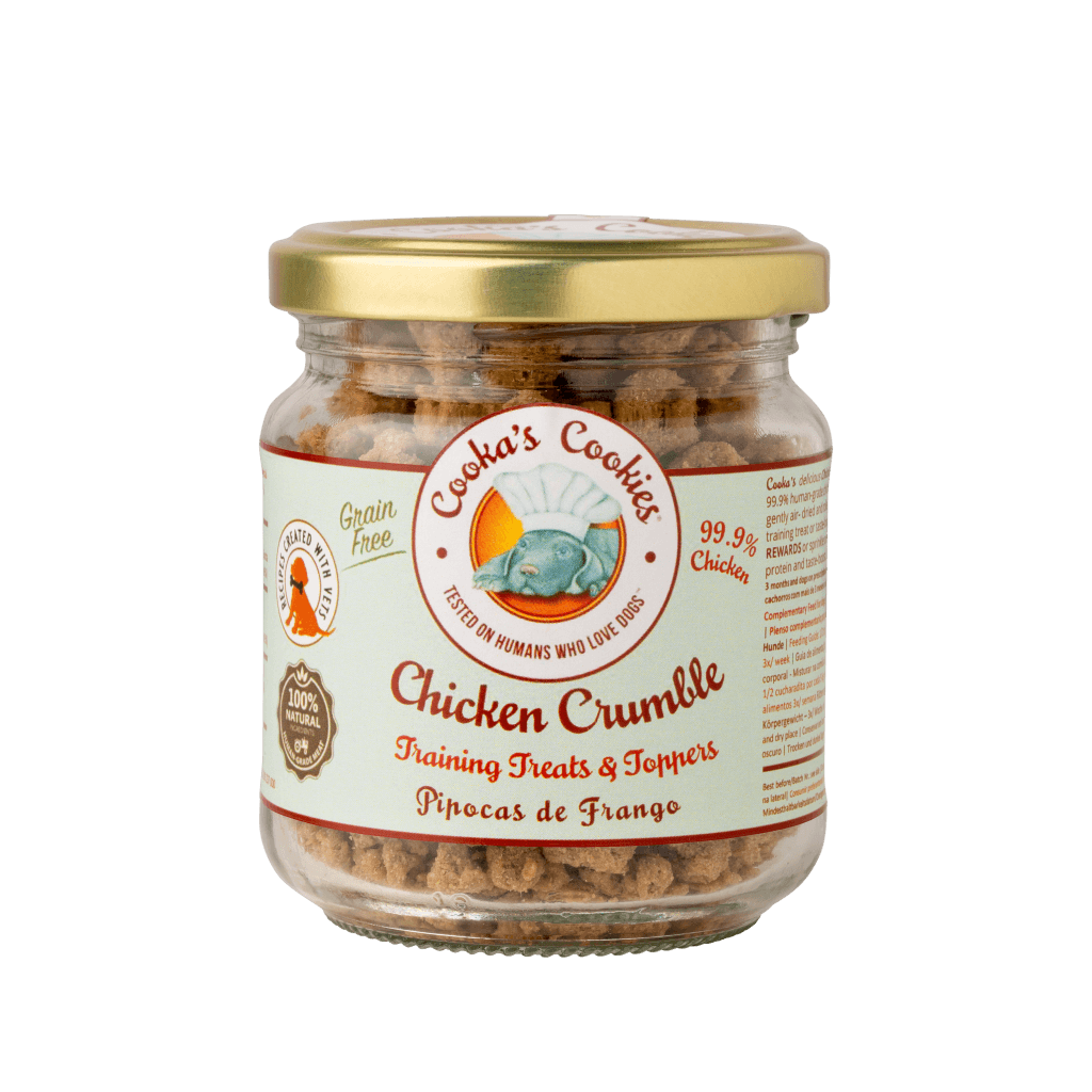 Chicken Crumble zijn smakelijke en volledig natuurlijke traktaties, gemaakt van 100% kwaliteit kipfilet. Deze graanvrije snack bestaat uit zorgvuldig gedroogde en gemalen kipfilet, die een hoge eiwitbron vormt en makkelijk verteerbaar is.