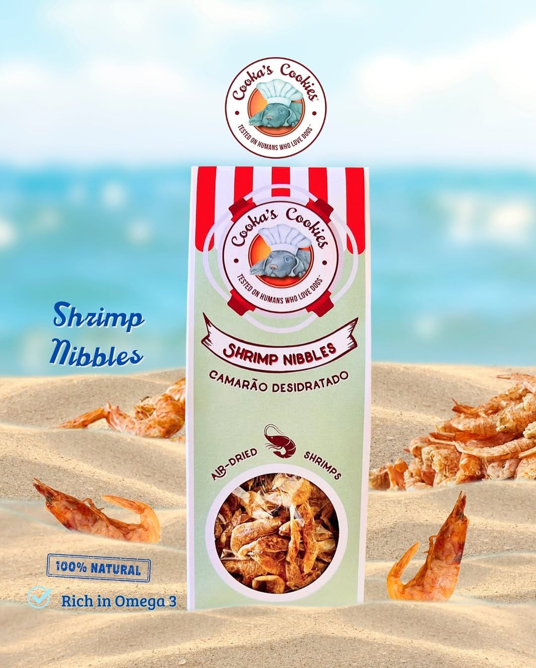 Shrimp Nibbles zijn heerlijke, volledig natuurlijke traktaties gemaakt van 100% gedroogde garnalen. Deze complete en graanvrije snack is rijk aan eiwitten en omega-3 vetzuren, waardoor ze ideaal zijn voor honden en katten met allergieën of een gevoelige spijsvertering.