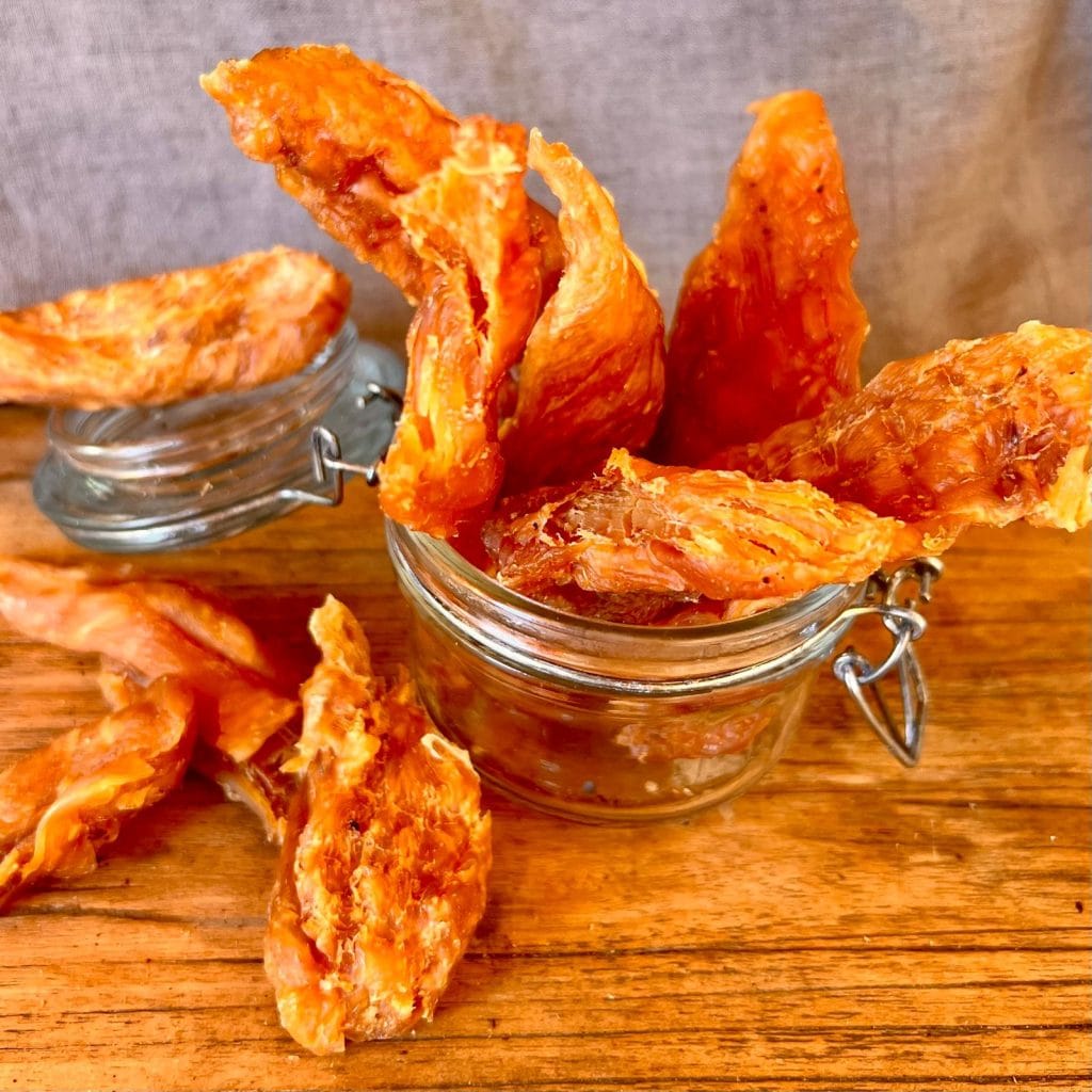 - 100% kalkoenfilet, lucht gedroogd en puur natuur