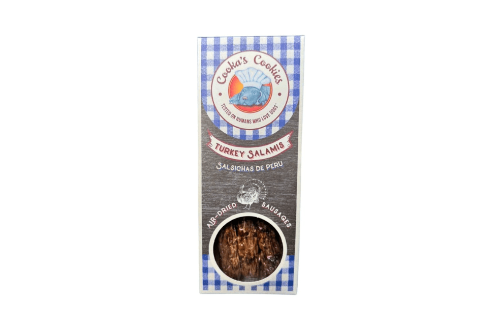 De Turkey Salami van Cooka’s Cookies is een hoogwaardige, 100% human-grade hondensnack, gemaakt van puur kalkoenvlees. Met 40,6% eiwitten ondersteunt deze traktatie de spier gezondheid en bevordert het herstel na inspanning. Het natuurlijke ijzer en de essentiële vitamines in kalkoen versterken het immuunsysteem en zorgen voor langdurige energie, zodat je hond vitaal en actief blijft.